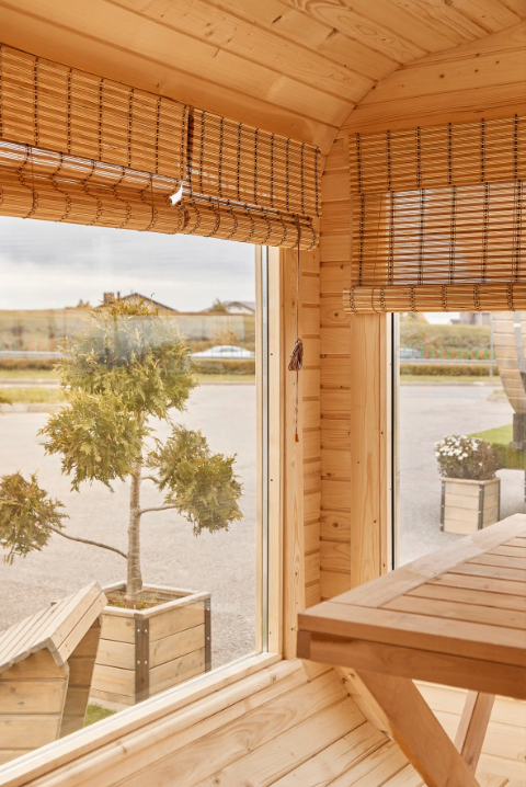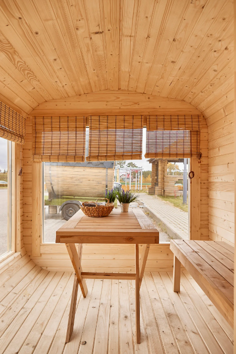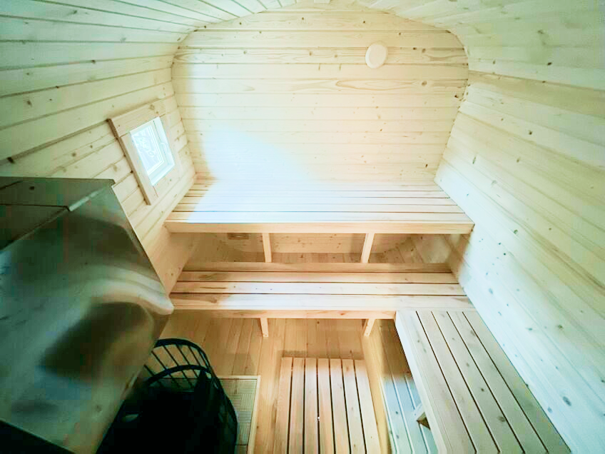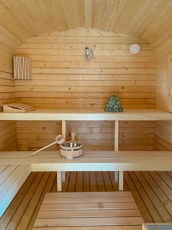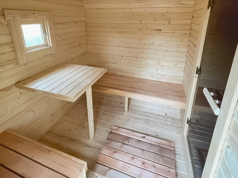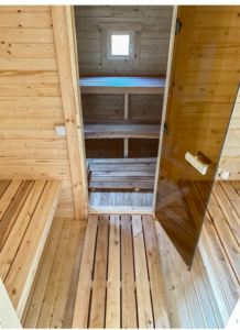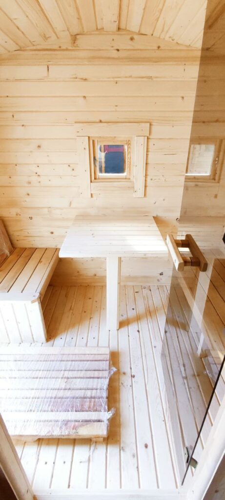 Wewnątrz sauny jest naturalne drewno iglaste które jest źródłem fitoncydów korzystnie wpływających na zdrowie. Aromat daje poczucie komfortu, a łagodny mikroklimat sprawia, że pobyt w naszej saunie będzie bardzo komfortowy.