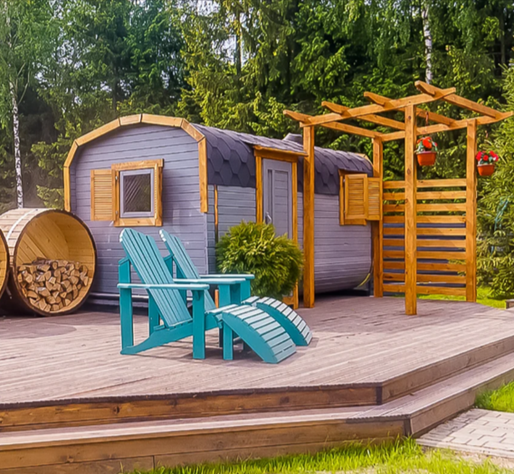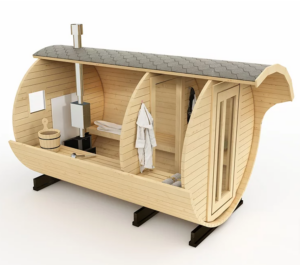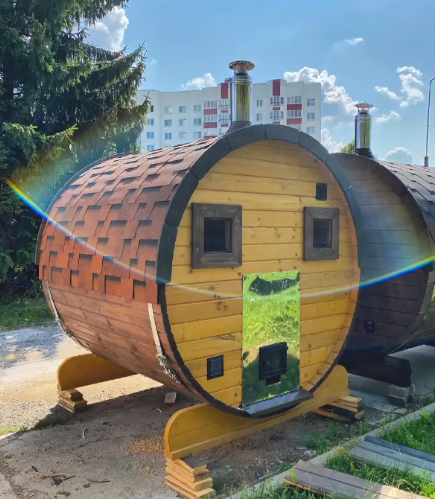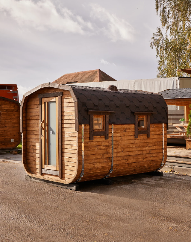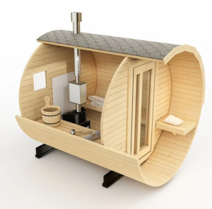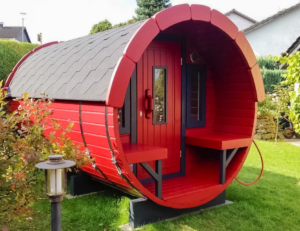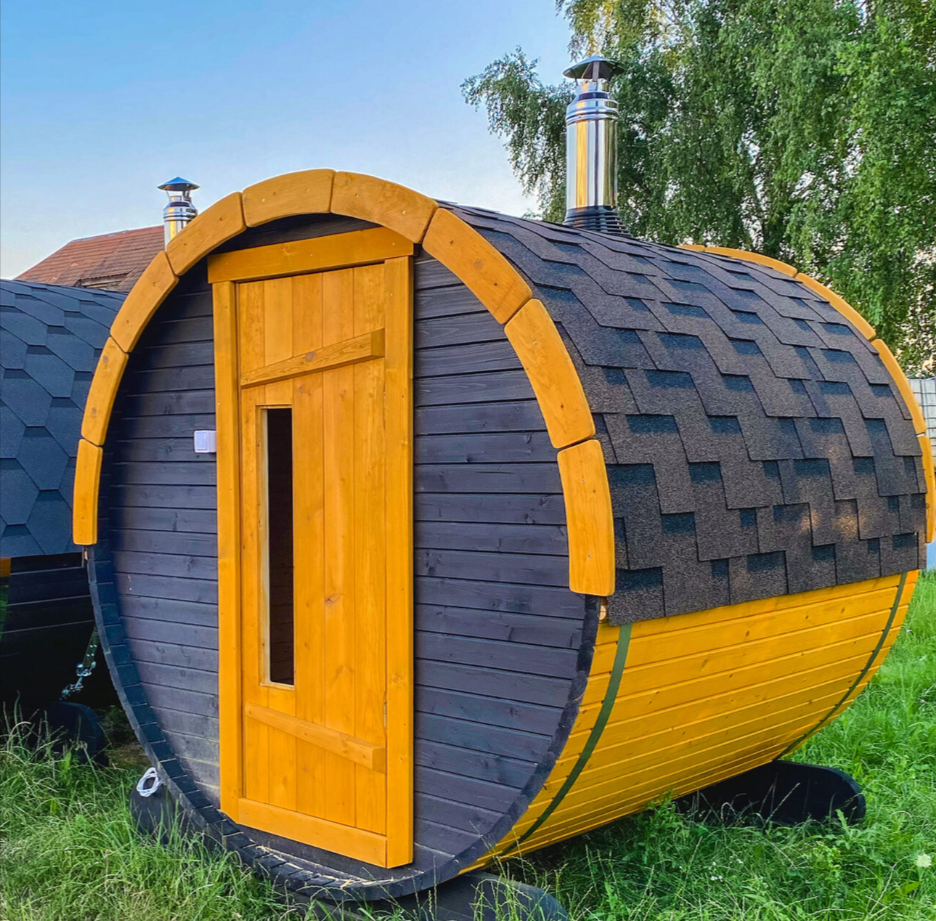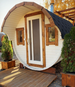Sauna-beczka nie wymaga od Ciebie dużych nakładów finansowych, łatwo ją zamontować w dowolnym miejscu na twojej działce lub tarasie, jest estetyczna i mobilna.